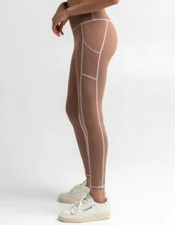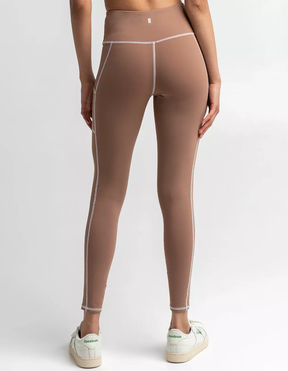RSQ Leggings. Wide high rise waist with logo screened at back. Sleeve pockets below hips. Fitted leggings. Contrast stich seams. Approx. inseam: 27″. 80% polyester/20% spandex. Machine wash. Imported.