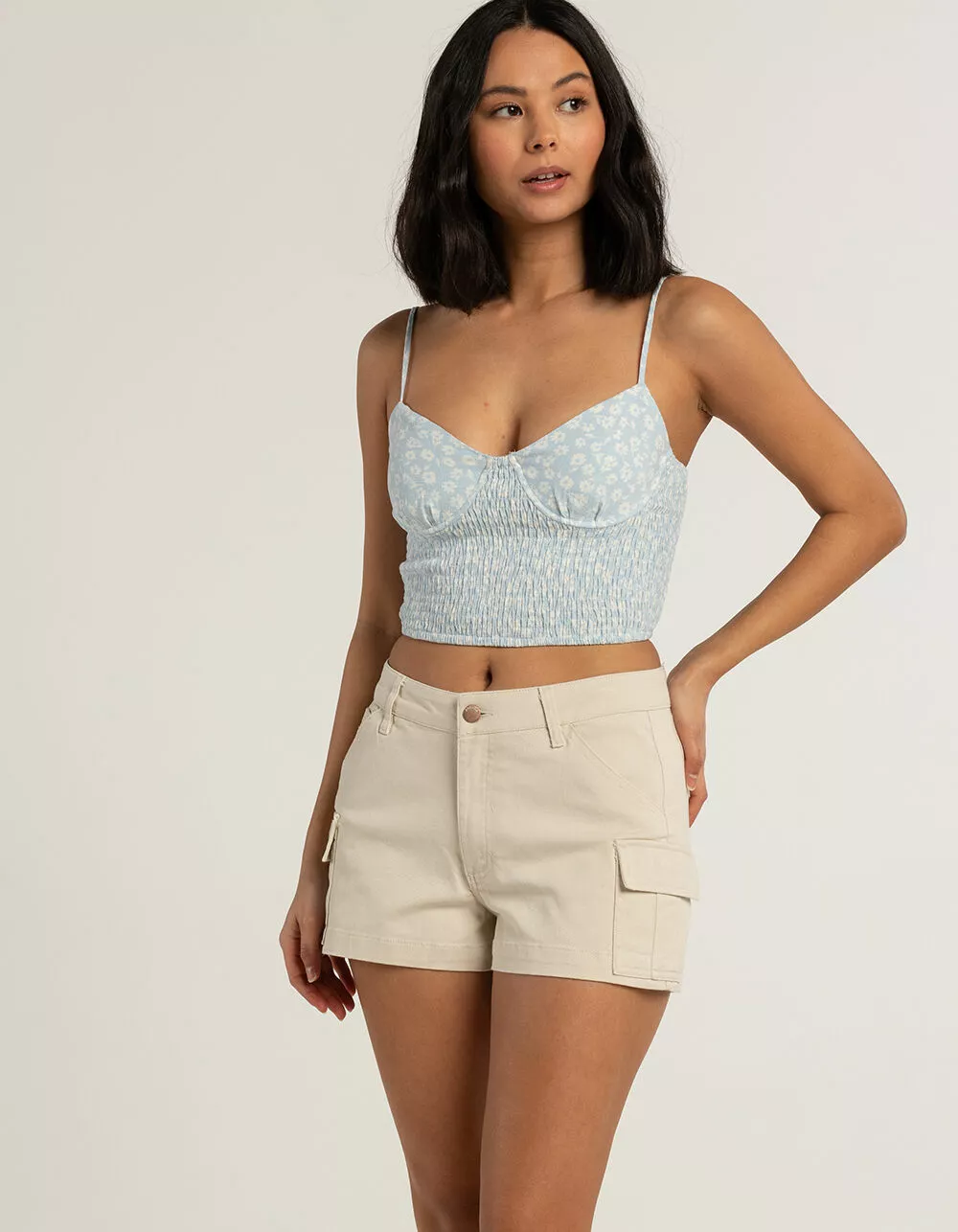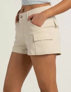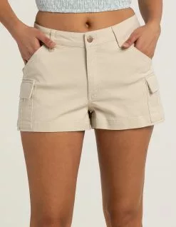 RSQ Cargo Shorts. Zipper fly with button closure. Belt loop waist. Slant hand pockets. Back flap pockets. Cargo pockets. Approx. inseam: 2.5”. 97% Cotton, 3% Spandex. Hand wash. Imported.