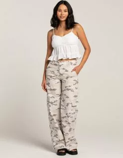 RSQ Crochet Woven Babydoll Top. Crochet bodice. V-neckline. Adjustable spaghetti straps. Elastic waist. Smocked back. Ruffle trim hem. Cropped fit. 100% Cotton. Machine wash. Imported.