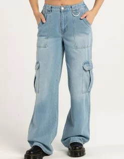RSQ D Ring Elastic Cargo Pants. Zipper fly with button closure. Elastic waist. Slant hand pockets and cargo pockets. Straight leg. Baggy fit. Approx. inseam: 31.5”. 100% Cotton. Machine wash. Imported.