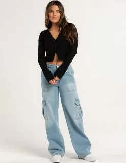 RSQ Long Sleeve 2 Button Cardigan. Knit cardigan with a 2 button front closure. Cuffed long sleeves. Rib trim. Cropped fit. 100% Cotton. Machine wash. Imported.