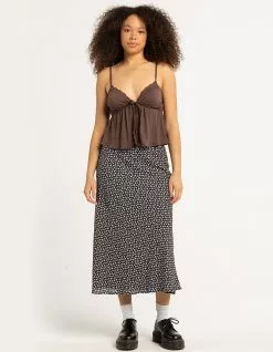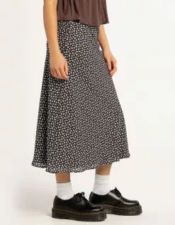 RSQ Low Rise Ditsy Midi Skirt. Allover floral print. Elastic waist. Built in lining. Approx. length: 33”. 100% Polyester. Hand wash. Imported.