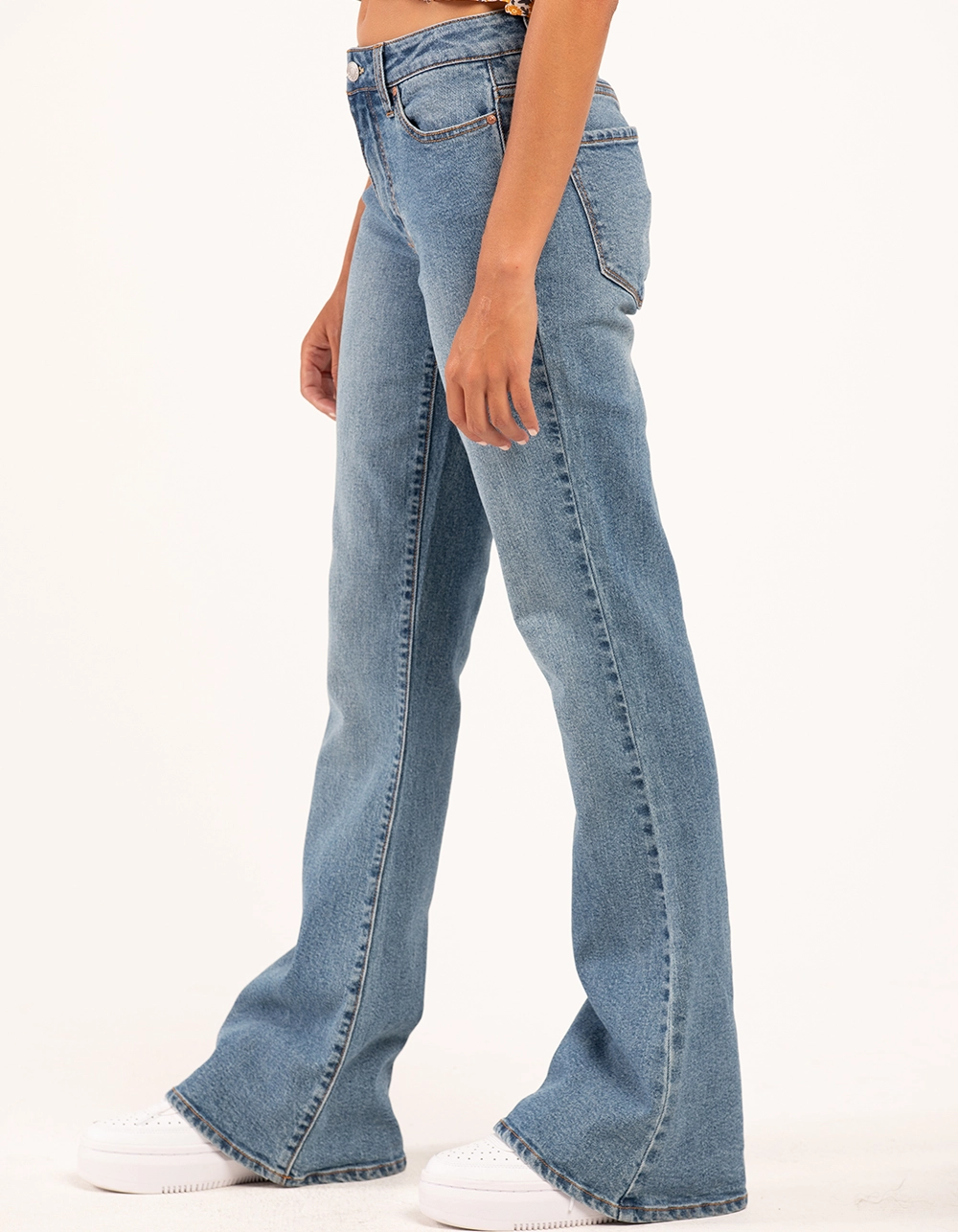 RSQ Low Rise Flare Jeans. Belt loop waist. Button closure paired with zipper fly. Basic 5 pocket design. Low rise. Retro flared hem. Updated in comfort stretch fabric for a better fit. Approx. inseam: 33.5″. Approx. rise: 9″ 99% Cotton 1% Spandex. Machine wash. Imported.