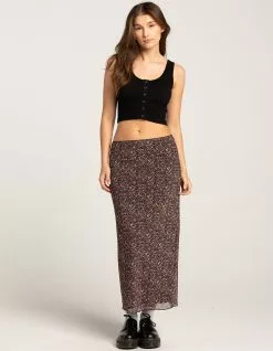 RSQ Low Rise Mesh Maxi Skirt. Allover floral print. Elastic waistband with pointelle trim. Mesh skirt with built in slip. Approx. length:36”. Shell: 95% Polyester, 5% Spandex. Lining: 100% Polyester. Machine wash. Imported.