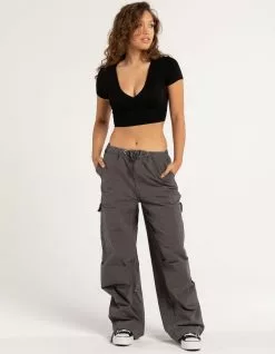 RSQ Open Back Crop Top. V-neckline. Partial open back featuring a tie closure. Short sleeves. Cropped. Ultra soft fabric. 95% Rayon, 5% Spandex. Hand wash. Imported.