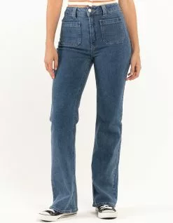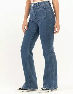 RSQ Patch Pocket Flare Jeans. Belt loop waist. Button closure paired with zipper fly. High rise. Fornt patch hand pockets. Back patch pockets. Flare hem. Approx. inseam: 31.5″. 99% Cotton 1% spandex. Machine wash. Imported.