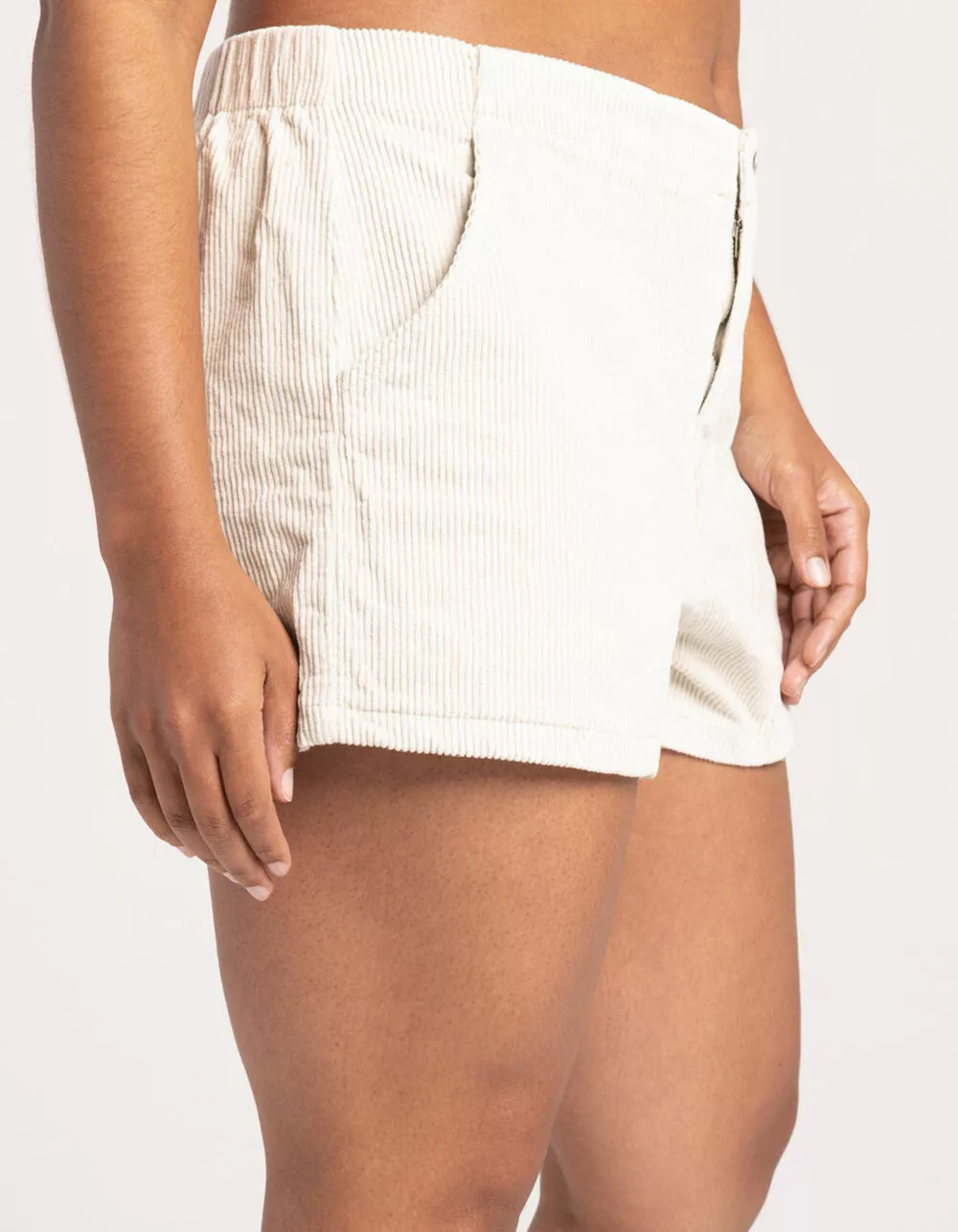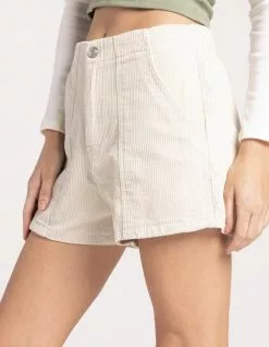 RSQ Utility Corduroy Shorts. Button closure paired with zipper fly. Slant hand pockets. Seam details. Corduroy fabrication. Elastic waistband. 100% Cotton. Hand wash. Imported.