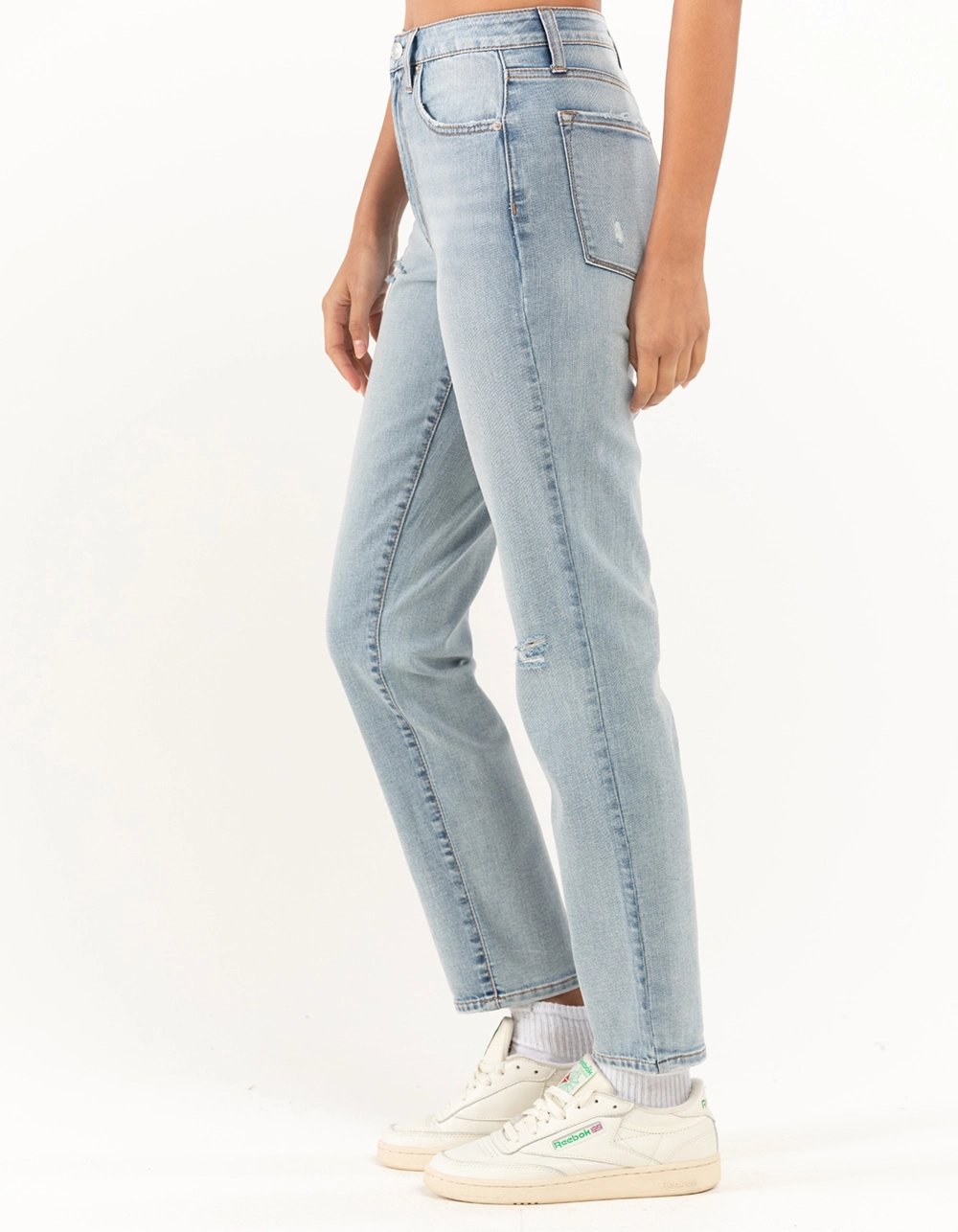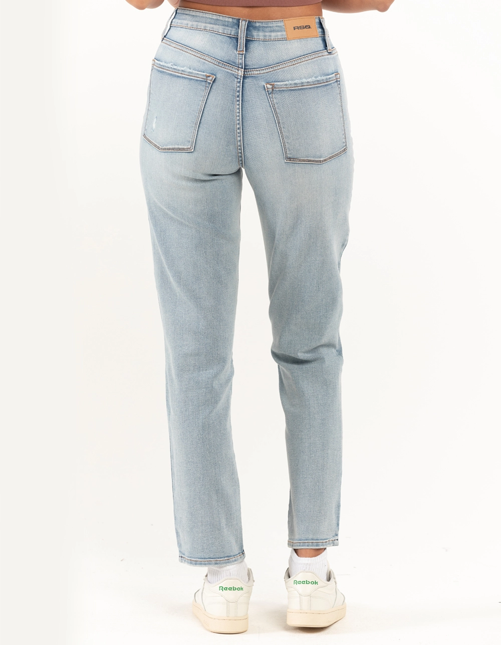 RSQ Vintage Mom Jeans. Belt loop waist. Button closure paired with zipper fly. Traditional 5 pocket design. Light distressing. High rise stretch jeans. Tapered leg. Approx. inseam: 29″. Front: 100% cotton. Back: 69% cotton 30% Repreve® recycled polyester 1% spandex. Machine wash. Imported.