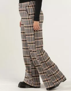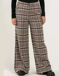 RSQ Wide Leg Plaid Pants. All over plaid. Belt loop waist. Button front waist. Zip fly. Wide leg fit. Approx. Inseam 32″. 65% Polyester 30% Rayon 5% Spandex. Hand machine. Imported.