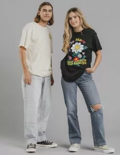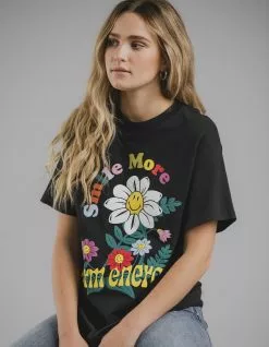 RSQ x Smiley Warm Energy Tee. Graphic on front. Crew neck. Short sleeve. 100% Cotton. Machine wash. Imported.