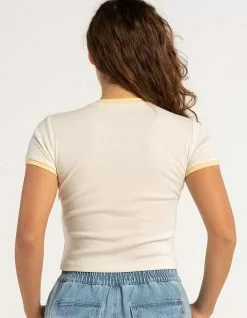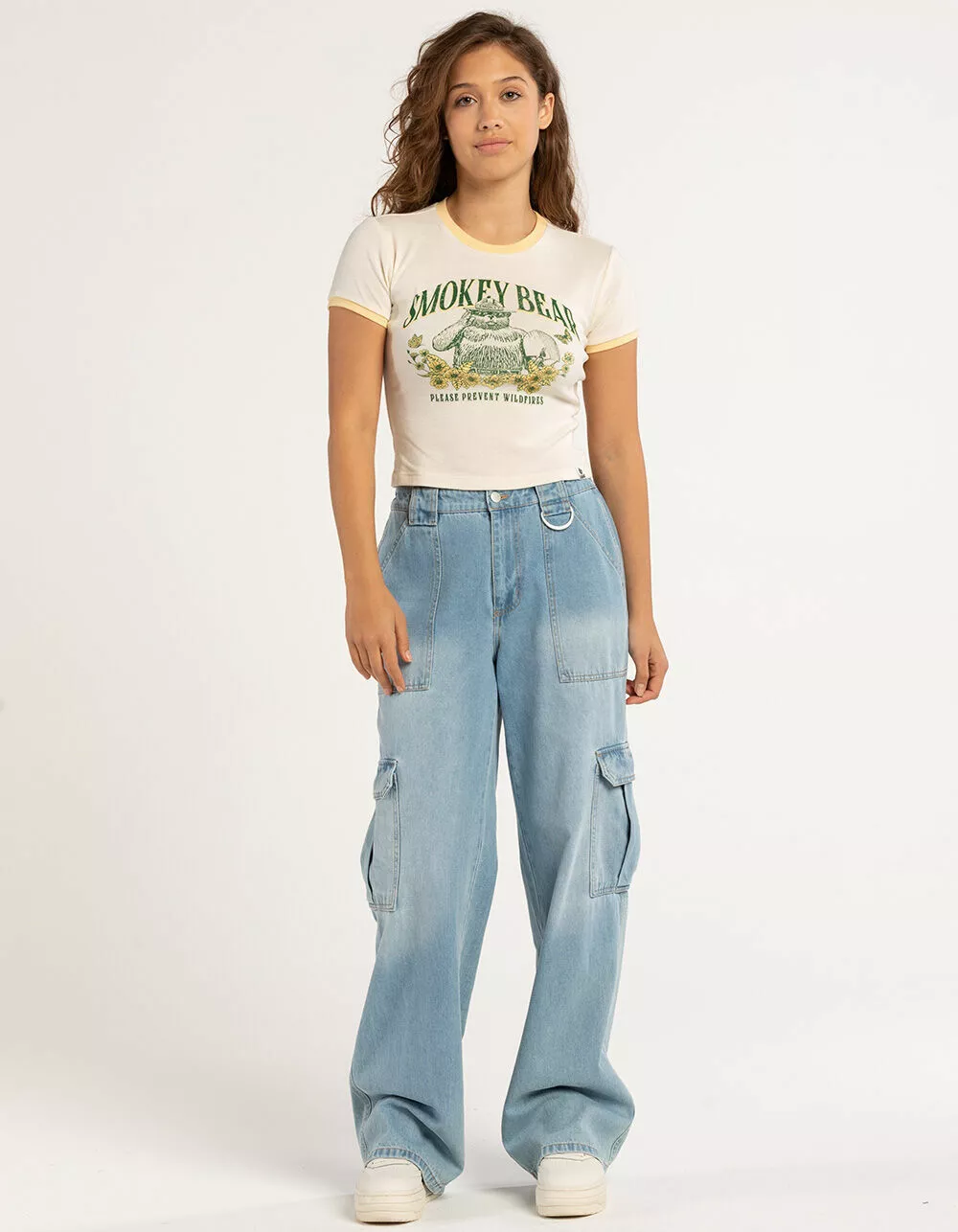 RSQ Smokey Bear Ringer Tee. Smokey Bear graphic screened on front. Ribbed crew neckline. Short sleeve. Contrast trim. Woven RSQ label at hem. Cropped fit. 100% Cotton. Machine wash. Imported.