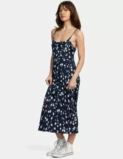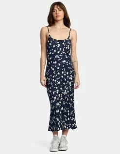RVCA Maiden Midi Dress. Allover print. Fuel your feminine side with the timeless beauty of the Maiden dress. Perfectly draped thanks to soft viscose fabric, this mid-length women’s slip dress is styled with a scoop neck, thin straps, and a cute tie at the back. 100% Viscose. Machine wash. Imported.