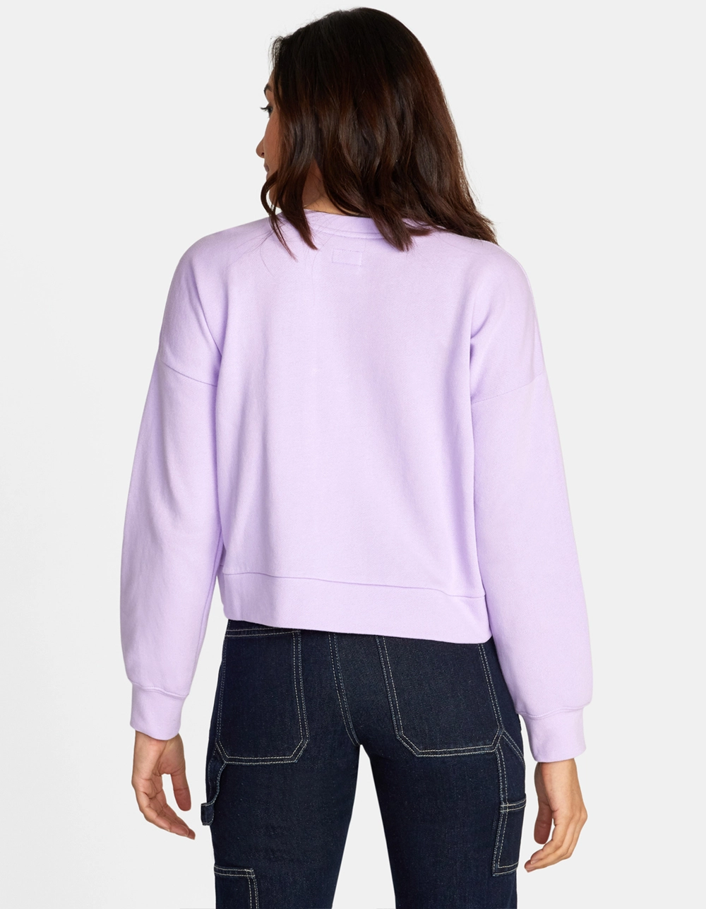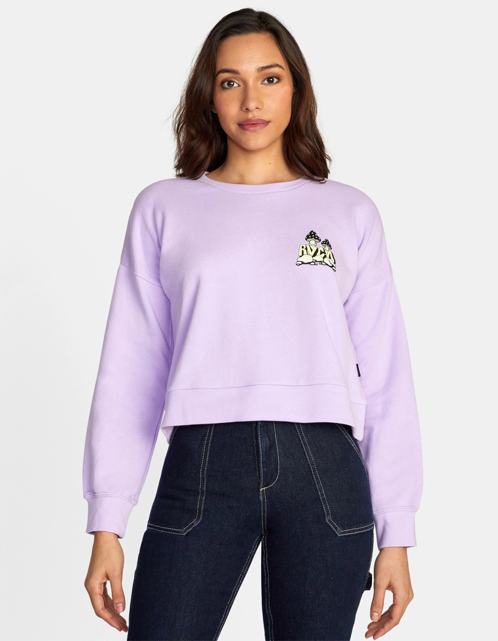 RVCA Mycelium Terry Pullover Crewneck Sweatshirt. Graphic on left chest. Crewneck fleece. French terry. Regular fit. Long sleeves. 100% cotton. Machine wash. Imported