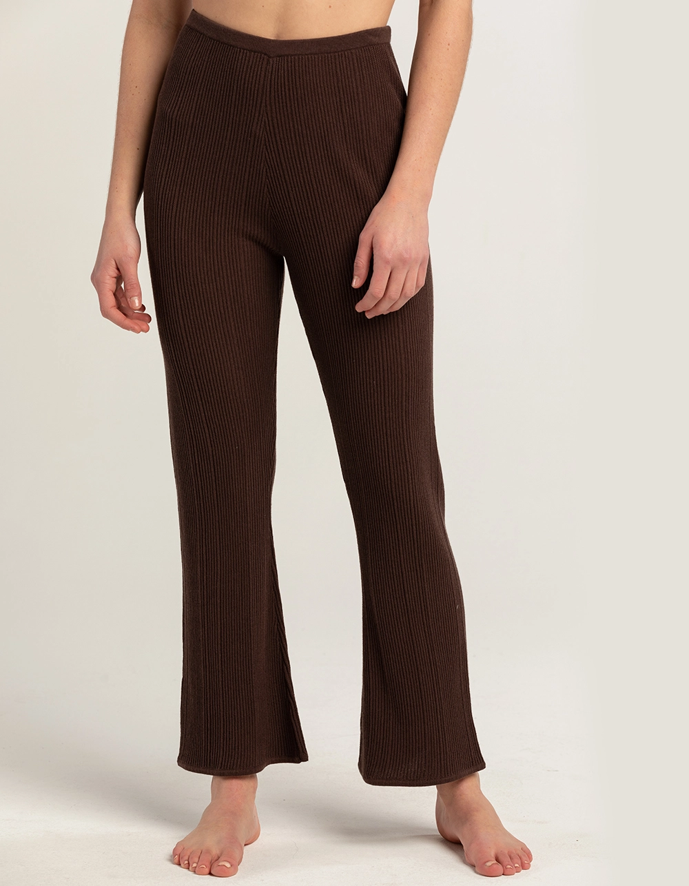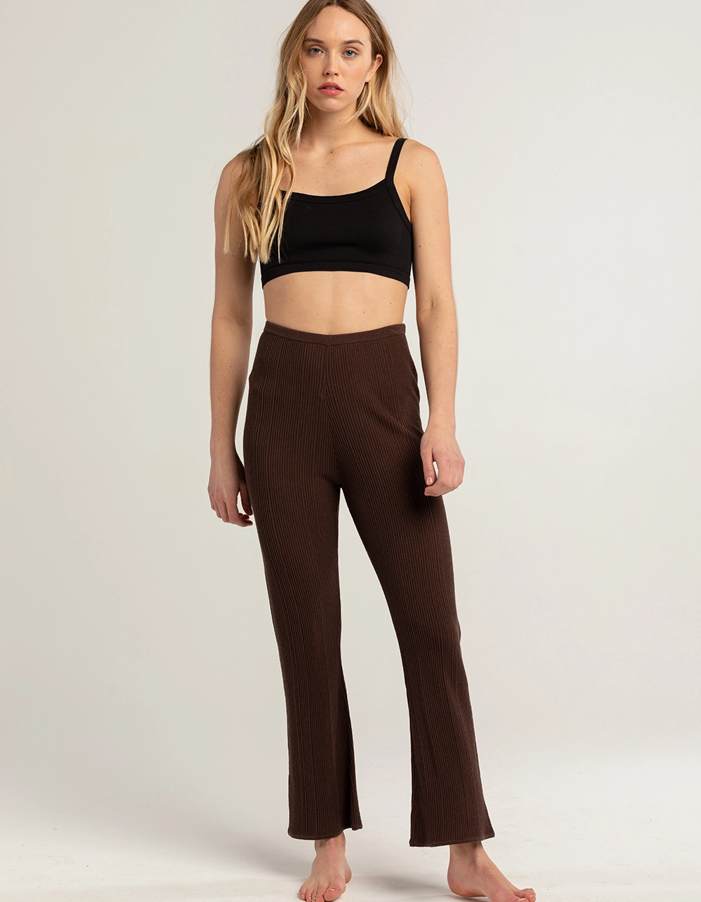 RVCA Swerve Flared Knit Pants. The swerve pant takes a retro silhouette and gives it a contemporary twist. These women’s flared pants are made in soft sweater knit, featuring a comfortable elastic waist and a slim fit through the leg with an easy kick-flare. 53% Cotton, 40% Viscose, 7% Nylon. Machine wash. Imported.