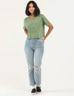 Salty Crew Go Fish Crop Tee. Graphic on front. Ribbed crew neckline. Short sleeves. Crop hem. 100% Cotton. Machine wash. Imported.
