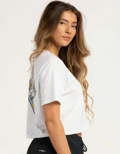 Salty Crew Tippet Crop Tee. Screen print at front chest and back body. Cropped loose fit tee. Salty Crew clamp label at sleeve. 100% Cotton Jersey. Machine wash. Imported.