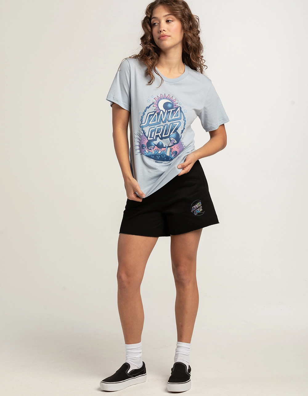 Santa Cruz Dark Arts Boyfriend Tee. Large graphic on front. Ribbed crew neckline, Short sleeve. Oversized fit. 100% Cotton. Machine wash. Imported.