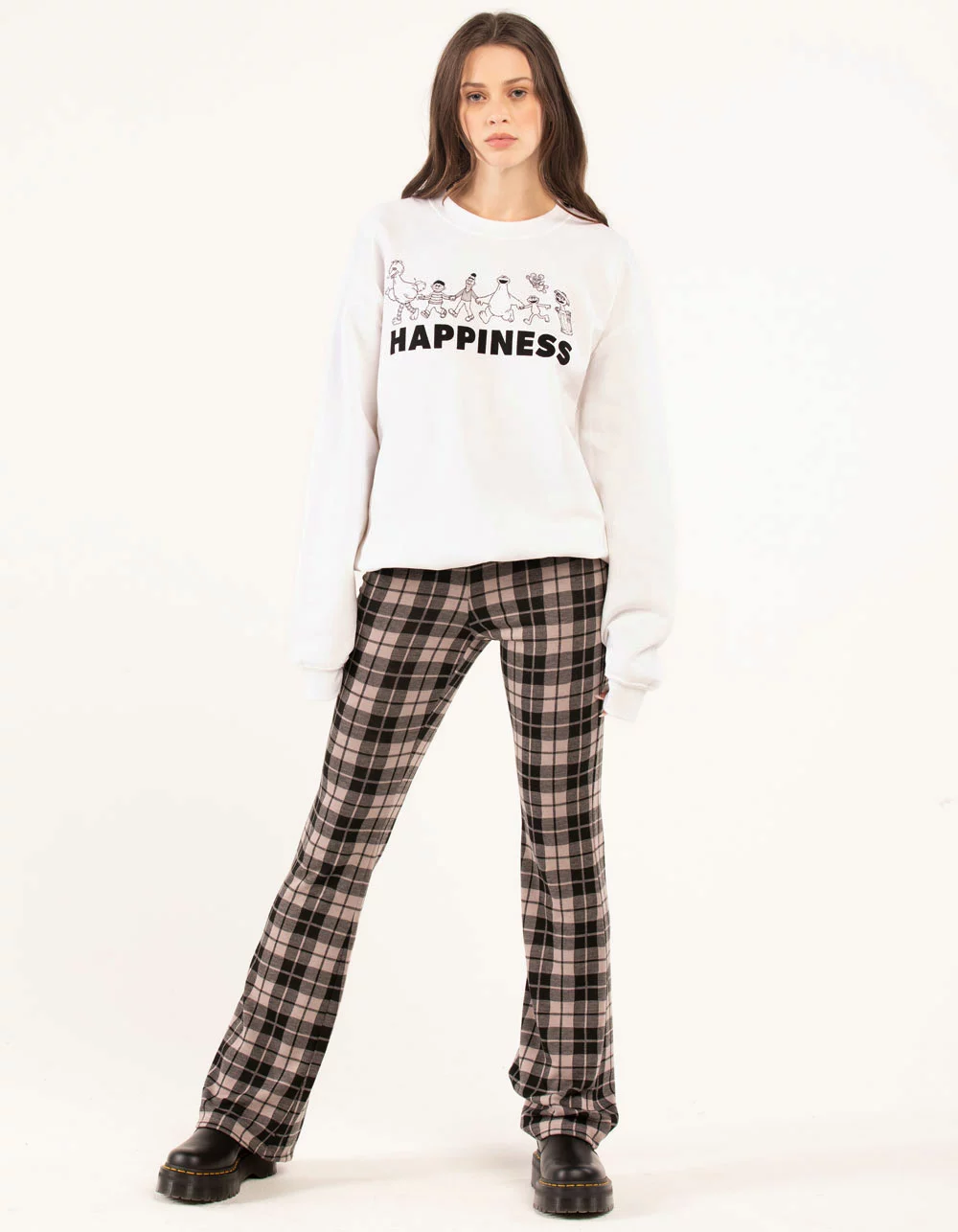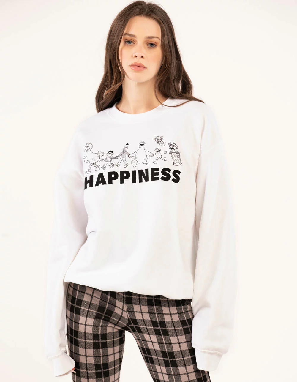 Sesame Street Happiness Crewneck Sweatshirt. Graphic at chest. Cuffed long sleeves and hem. Ribbed crew neckline. Long sleeves. 50% Cotton 50% Polyester. Machine wash. Imported.