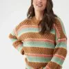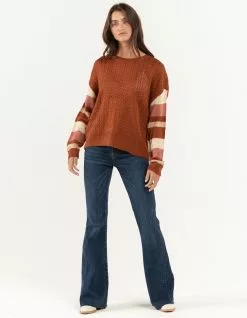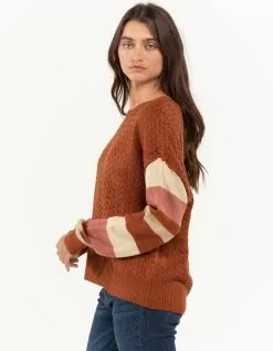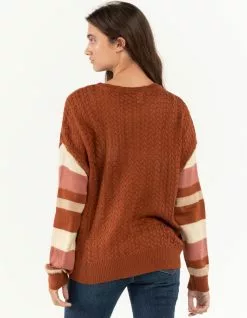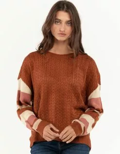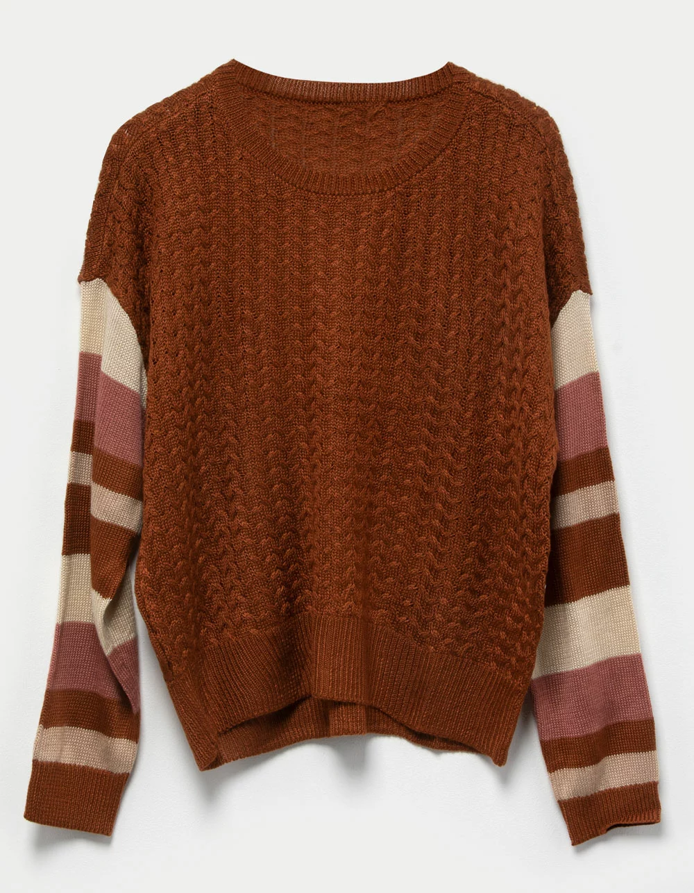Sisstrevolution Pearl Womens Sweater An agreeable mixed stitch will keep you up to date. The Pearl Long Sleeve is constructed with a crew rib neckband and rib waistband and cuffs. She goes the extra mile with a brushed cable knit stitch on the body and yarn dye stripe sleeves. 100% Acrylic. Dry clean only. Imported.