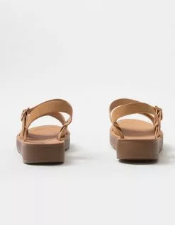 Soda Ankle Strap Mini Flatform Sandals. Faux leather upper. Crisscross toe straps. Ankle strap with buckle closure. Mini flatform outsole. Rubber sole. Padded footbed. Approx. platform: 1.25″. Imported.