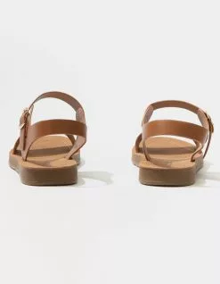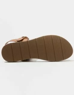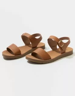 Soda Comfort Ankle sandals. Features a faux leather upper with an ankle strap and buckle closure. Cushion molded sole. Synthetic rubber outsole. Imported.