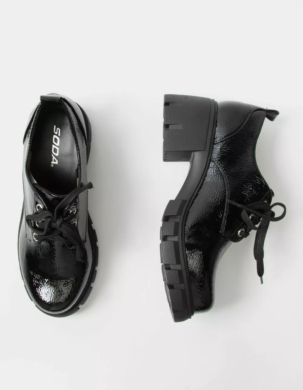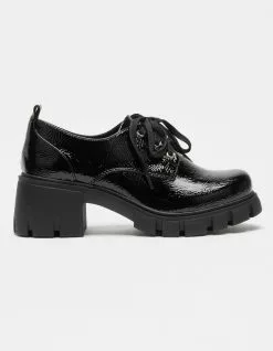 Soda Lace Up Heel Oxford. Platform oxfords. Synthetic upper. Lace-up closure. Rubber lug sole. Padded insole. Approx. platform height: 2.5″. Imported.