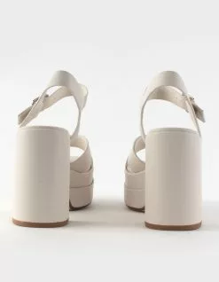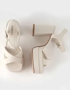 Soda Scoly Platform Sandals. Solid color. ankle straps with silver toned buckle. Crisscross strap design. Round toe. Platform sandal. Block heel. Approx. heel height : 4.5″. Platform height: 2″. Imported.