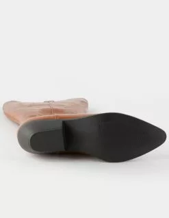 Soda Cowboy Western Boots. Faux leather cowboy boots with stitch detailing. Pointed toe. Synthetic outsole. Stacked heel. Approx heel height: 2″. Imported.
