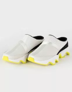 Sorel Kinetic Impact II Mules. A slip-on that makes a statement without saying a word. The Kinetic™ Impact II Mule is made to be in motion, with a sporty build and foot-to-floor cushioning that softens every step of your daily grind. It’s comfort you can count on, grounded by a can’t-miss sole that defies the status quo. A slip-on style with leather in vamp and plush, breathable mesh around collar. Rubber rand with molded SOREL logo. Removable molded EVA with leather topcover. Lightweight molded Livelyfoam. Midsole made with 10% Bloom, an algae-biomass-containing material. TPU for arch support. TPU heel logo. Molded rubber with ground contact EVA. Imported.