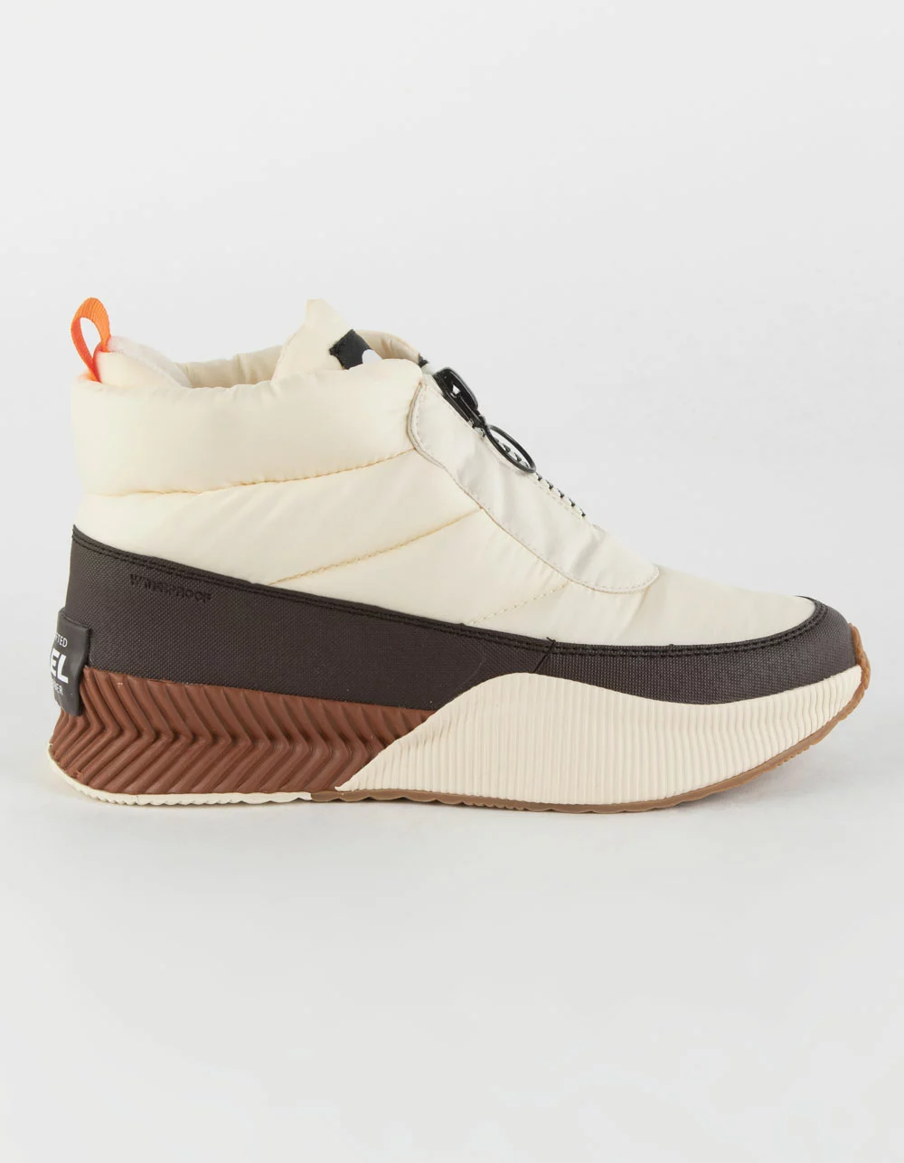 Sorel Out N About III Puffy Womens Zip Boots. This style brings the warmth and the waterproofing, all in one puffy package. SOREL considered every detail — from the fleece lining to the 300g insulation to the zip for easy entry — to create a pair you’ll wear for years to come. Even the vulcanized sole has added height, so you can walk comfortably above the elements. Imported.