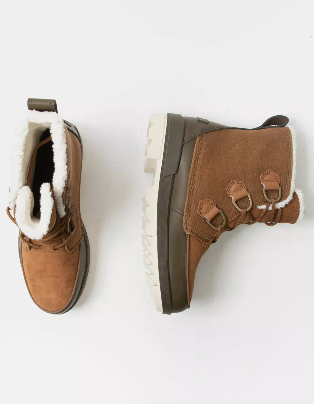 SOREL Tivoli™ IV Boots. Our updated 5-star Tivoli features sleeker lines but the same flurry-defying functionality you love. Featuring waterproof suede and leather, 100g warm insulation, no-slip rubber traction sole, and a walk-all-day EVA footbed—this tall boot packs a big punch. Die cut PU like EVA footbed. Microfleece top cover. Rubber midsole. Waterproof suede and PU coated leather upper. Faux fur collar. Microfleece lining. Molded rubber outsole. Sorel Waterproof leather patch at outer ankle. Lace up front. Approx. heel height: 1.75″. Imported.