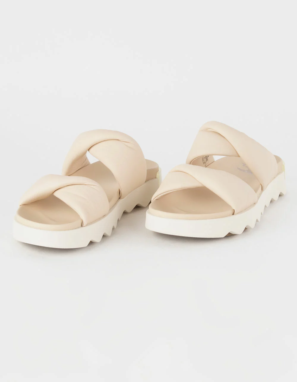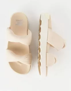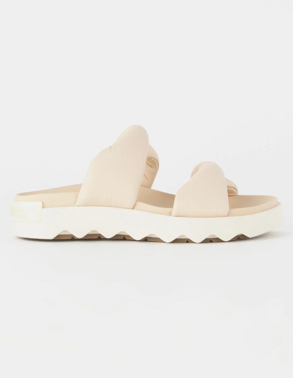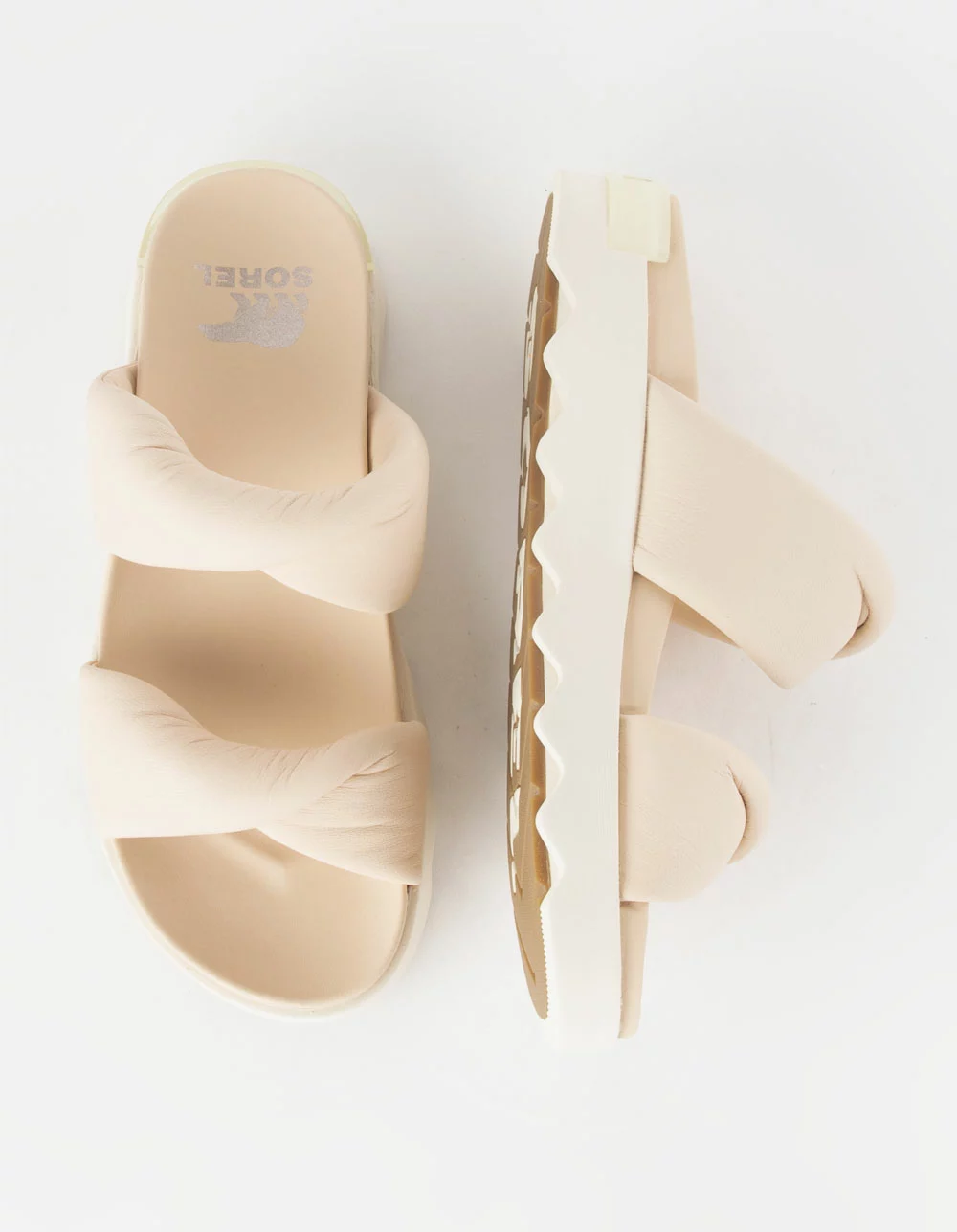 Sorel Vibe Twist Slide Sandals. New from SOREL, the Viibe™ Twist Slide is a classic silhouette with a modern twist. It’s as fun as it is functional, with puffed-up leather straps and contoured cushioning that supports in all the right places. The scalloped sole is lightweight enough for all-day wear, so you can explore without anything slowing you down. Full grain upper straps with puff detailing. Leather lining. Molded and contoured EVA, synthetic topcover. Lightweight molded Livelyfoam. TPU heel logo. Molded rubber outsole with ground contact EVA. 1 inch platform height. Imported.