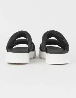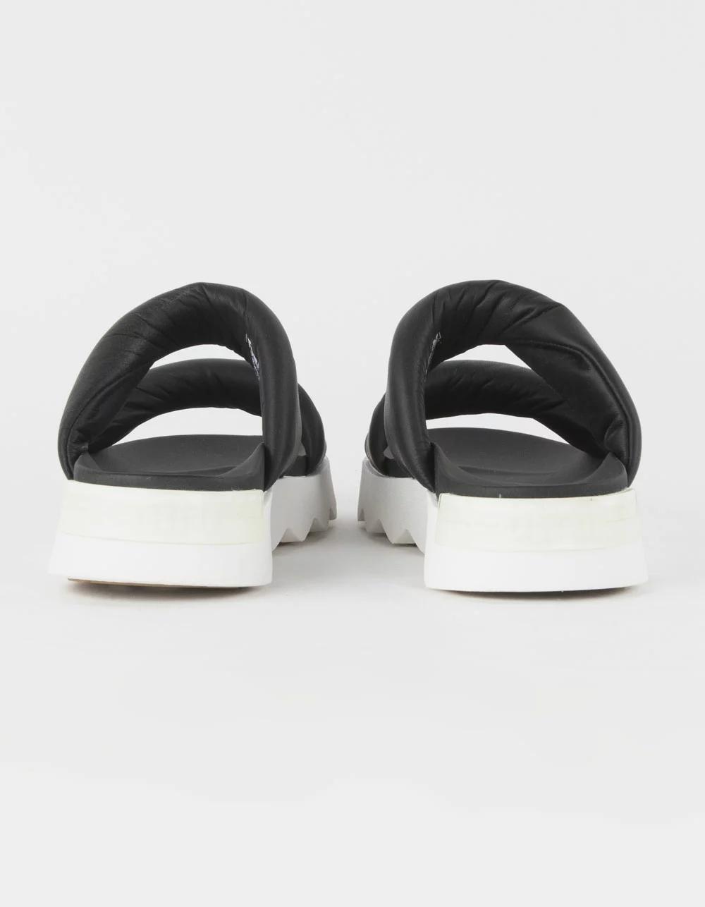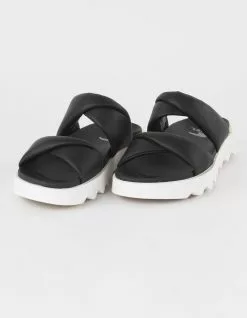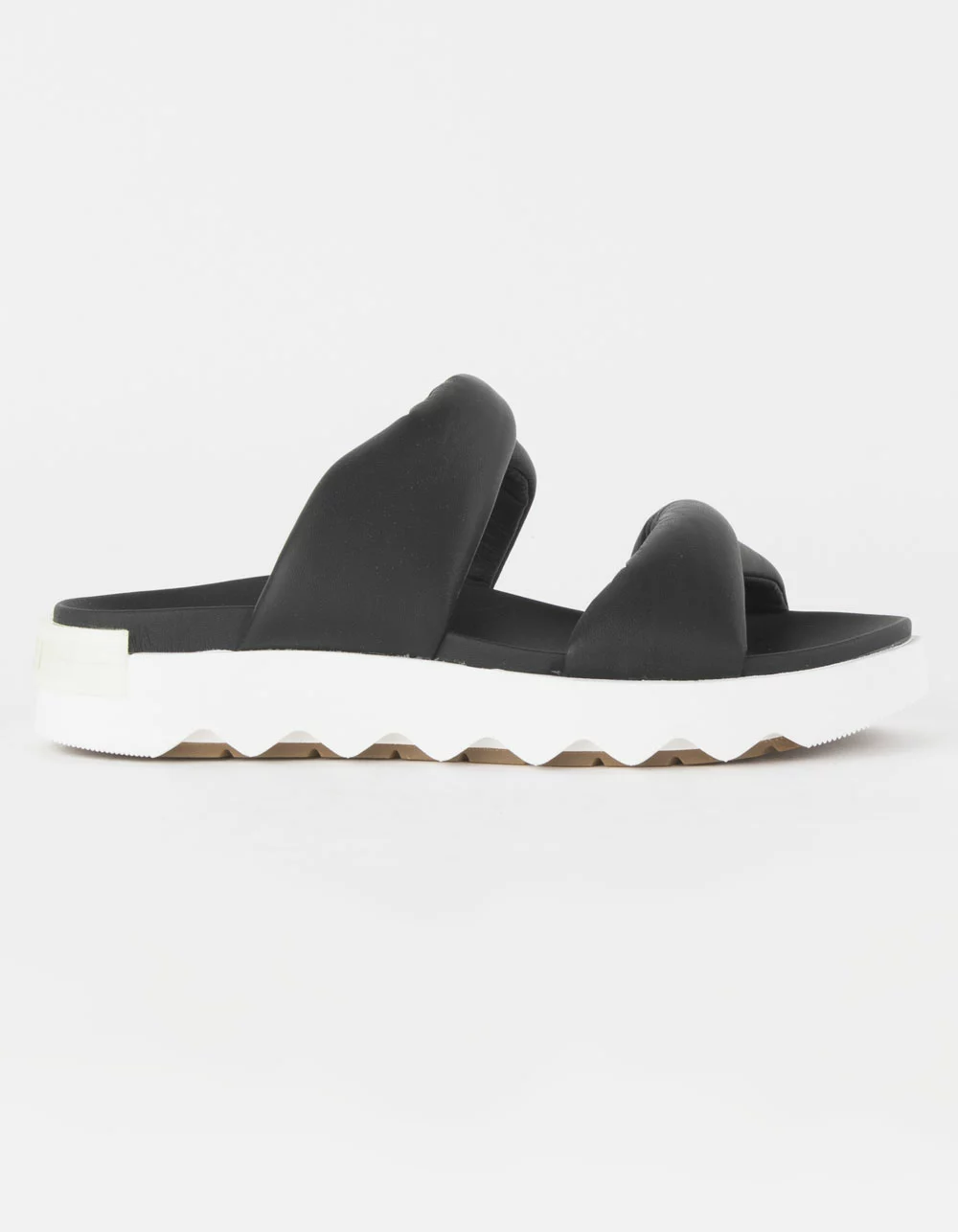 Sorel Vibe Twist Slide Sandals. New from SOREL, the Viibe™ Twist Slide is a classic silhouette with a modern twist. It’s as fun as it is functional, with puffed-up leather straps and contoured cushioning that supports in all the right places. The scalloped sole is lightweight enough for all-day wear, so you can explore without anything slowing you down. Full grain upper straps with puff detailing. Leather lining. Molded and contoured EVA, synthetic topcover. Lightweight molded Livelyfoam. TPU heel logo. Molded rubber outsole with ground contact EVA. 1 inch platform height. Imported.