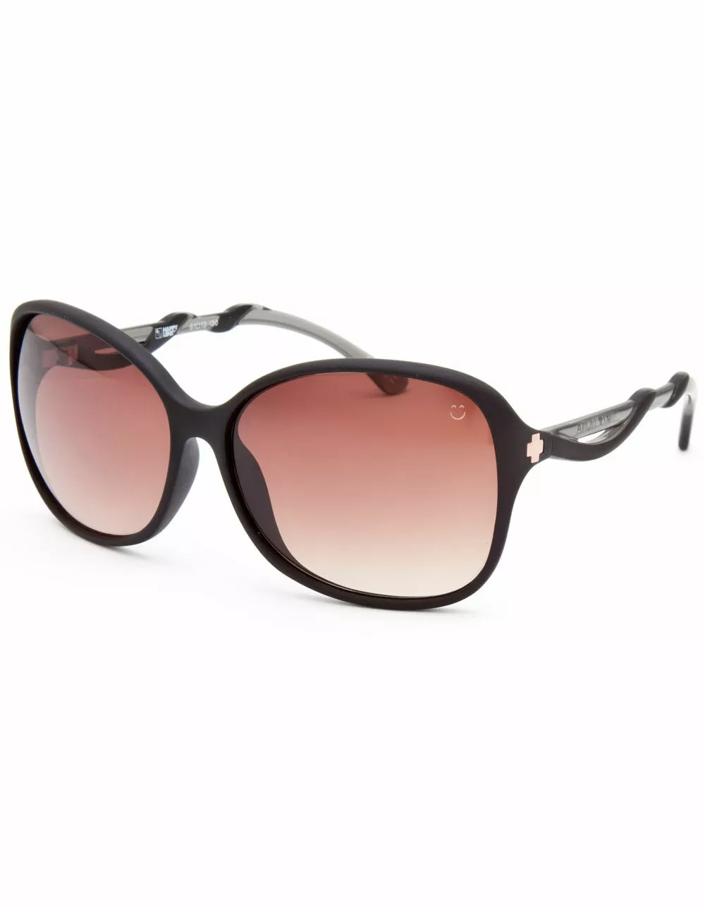 Spy Fiona sunglasses. With a bold butterfly shape, the Fiona is confident, fun up front and sinewy with curves in all the right places. Crafted from virtually indestructible Grilamid®. 3-barrel hinges. 6-base polycarbonate ARC® lenses. 100% UV protection. Imported. Comes with the SPY Happy Lens, the only color and contrast enhancing lens technology that maximizes the transmission of the sun’s “good” rayswhile still blocking out its “bad” rayswhich studies suggest fosters an uplift in mood and alertness.California Residents: Proposition 65 Warning