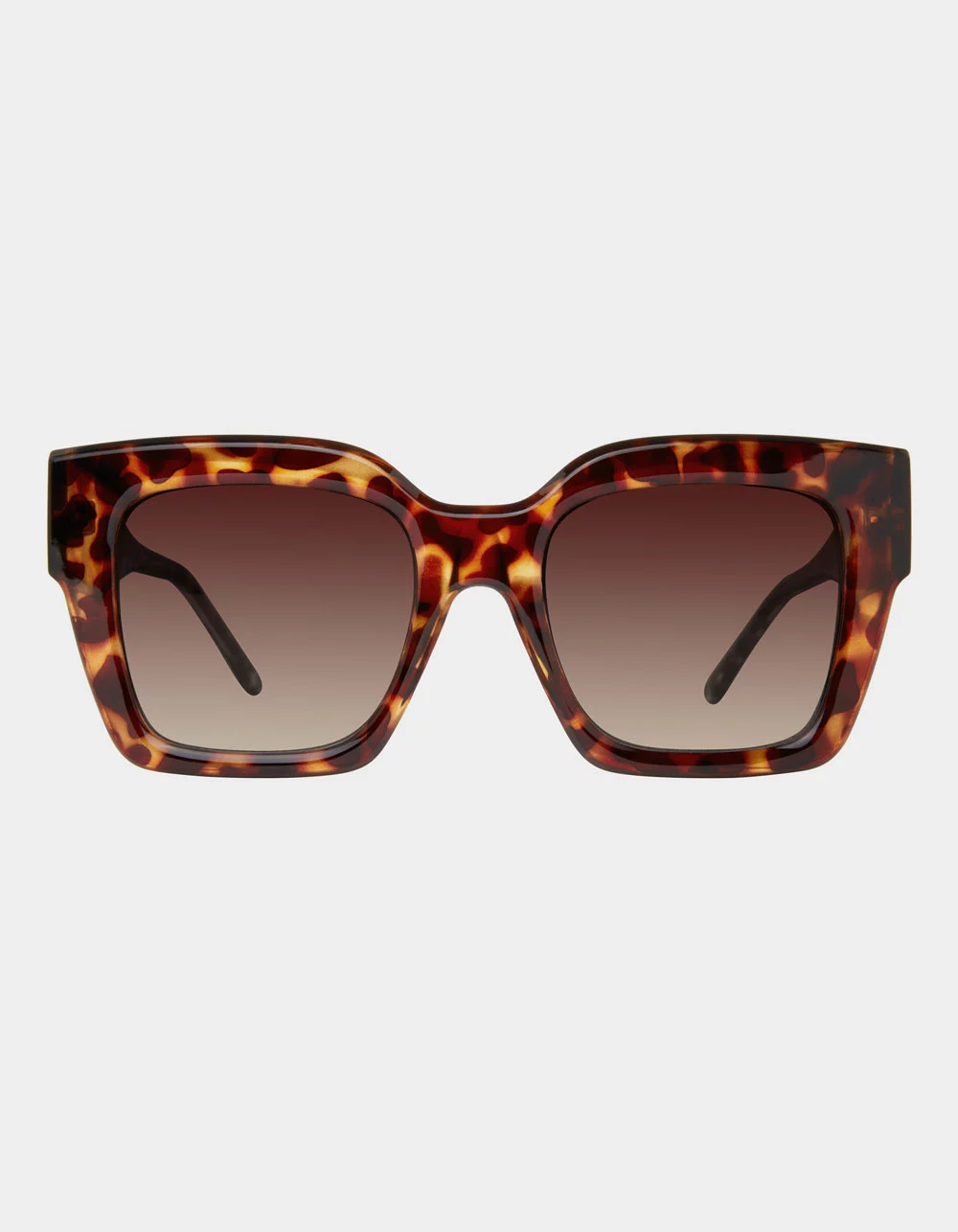 Steve Madden Davina Sunglasses. Tortoise shell pattern frames. Steve Madden branding at left temple. 100% UV protection. Imported.