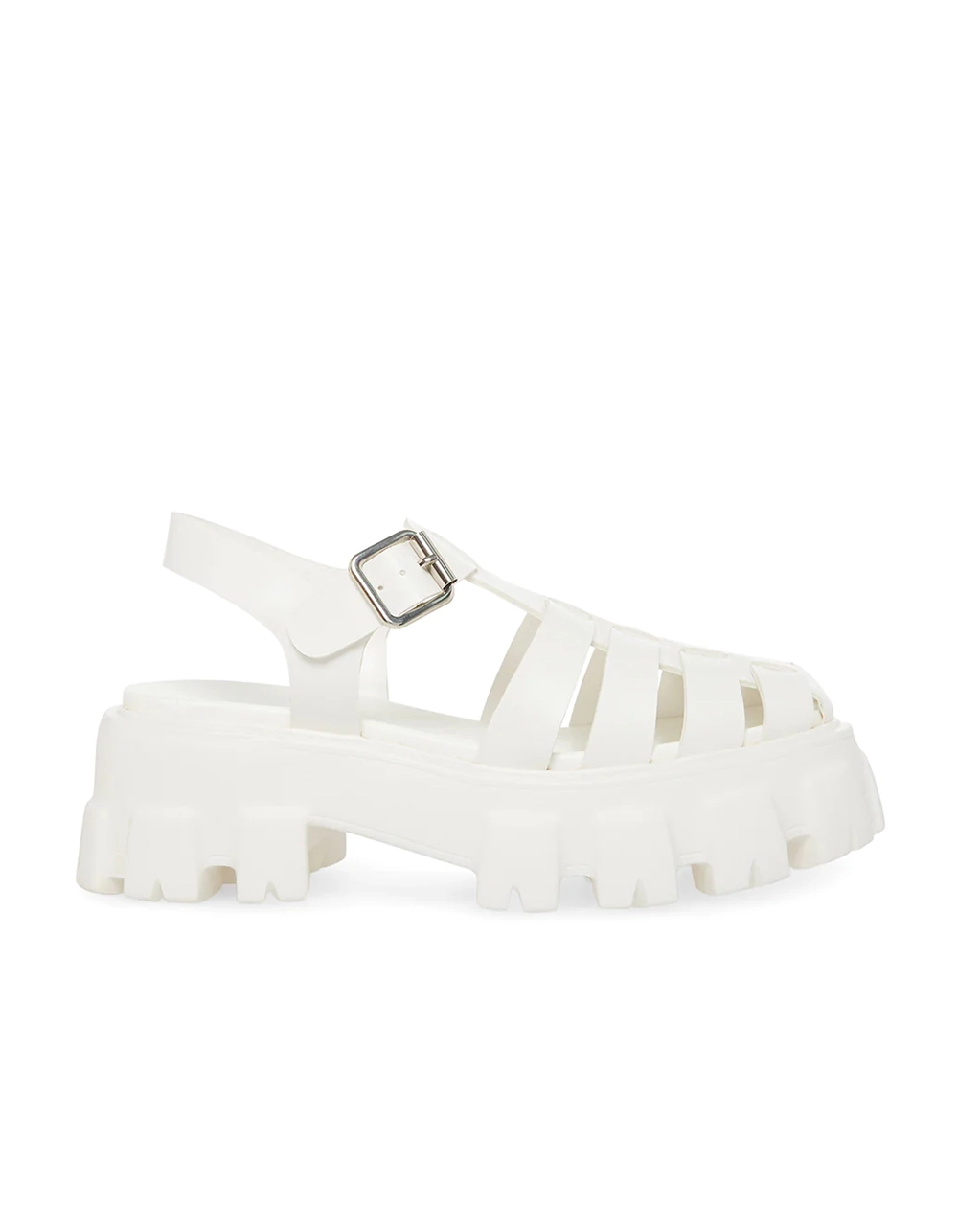 Steve Madden Echo Platform Sandals. The Echo sandal has a classic fisherman strap design over a heavily treaded platform sole. Buckle closure at ankle strap. Lug sole. 2 inch heel height. 1.5 inch platform. Synthetic upper material, lining and sole. Imported.