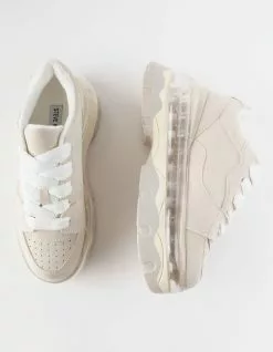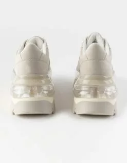 Steve Madden Evolved Platform Shoes. EVOLVED is an old school sneaker design that sits on top of a new school stacked platform sole with a transparent panel. Chunky sole sneaker. Laced closure. 3 inch heel height. 1.5 inch platform. Suede and leather upper material. Textile lining. Synthetic sole. Imported