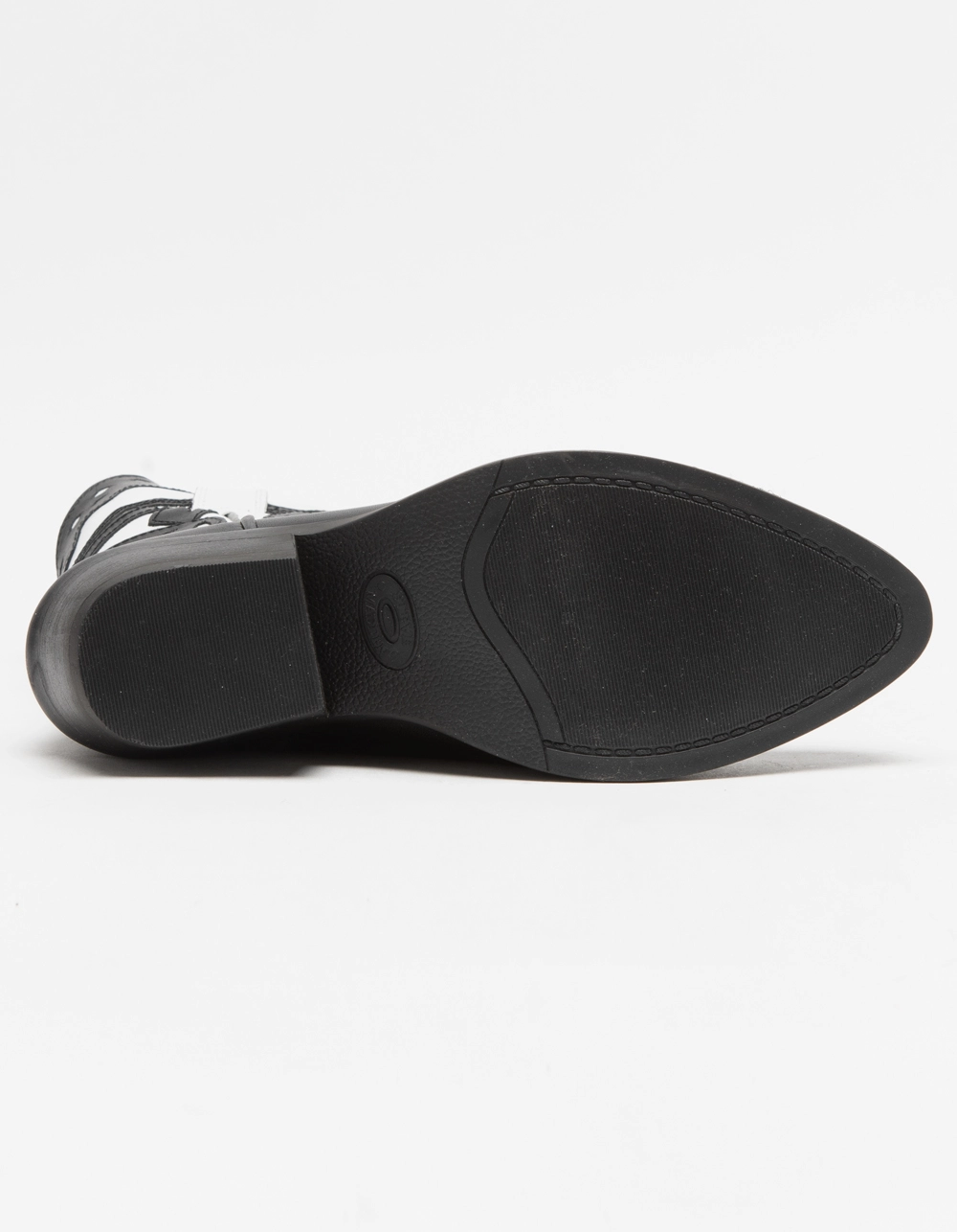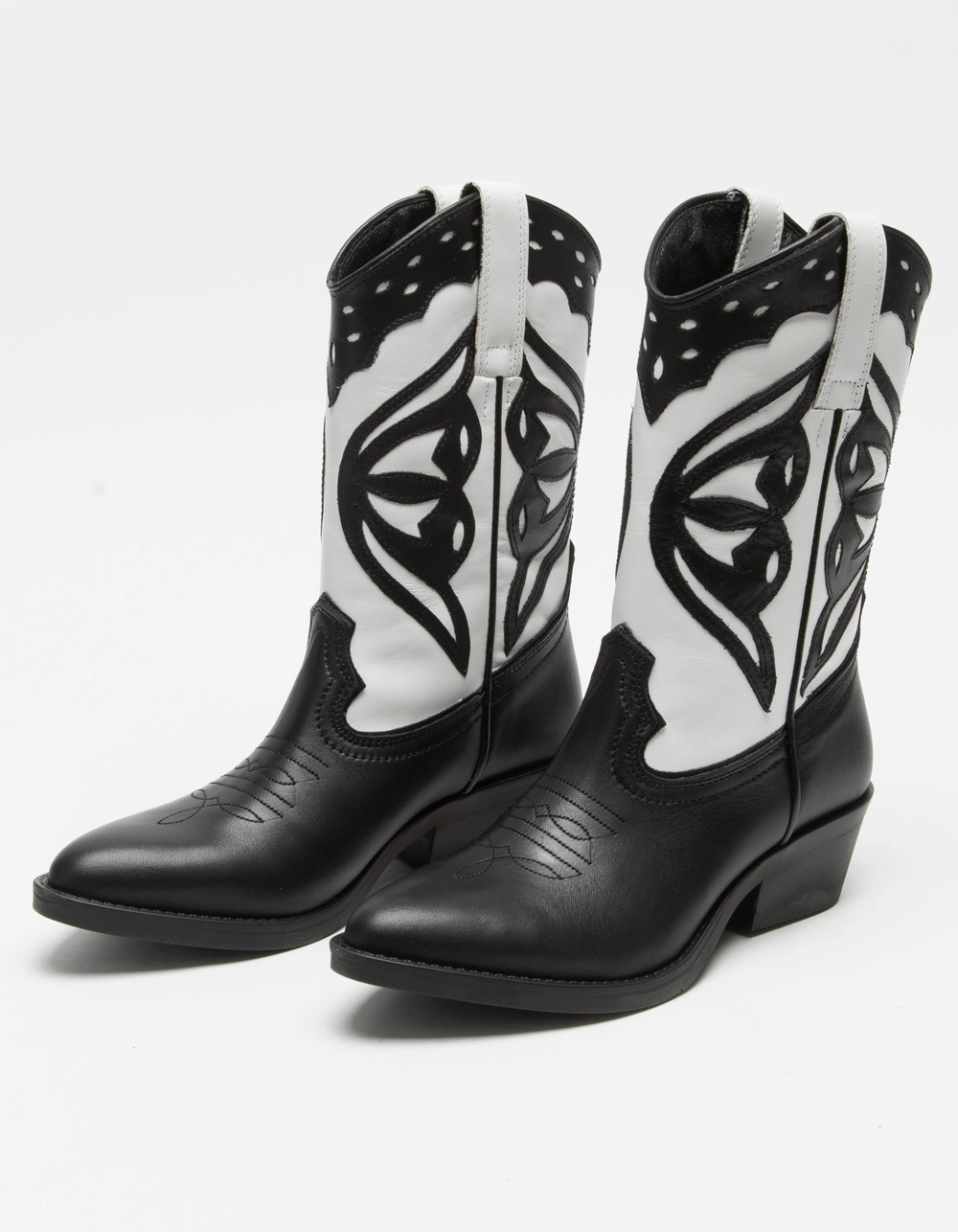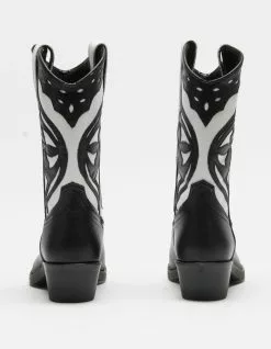 Steve Madden Laredo Western Boots. A modern take on a cowboy boot, LAREDO is the one to be seen in. This pair sits on a stacked block heel for that classic western-inspired look, while a rounded toe gives them a fresh feel. Leather upper material Leather lining. Leather sole. 1.75 inch heel height. 12 inch shaft circumference. 9 inch shaft height. Imported.