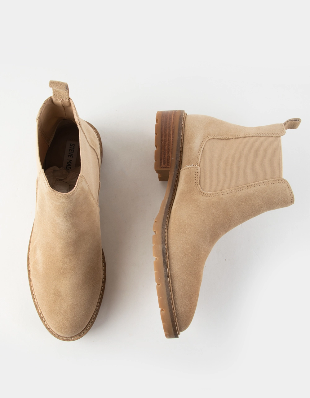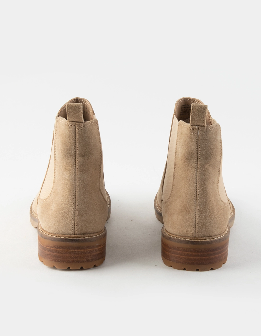 Steve Madden Leopold Boots. Suede upper. Pull-on design. Textured Rubber sole. Elastic gore. Approx. 4.25″ shaft height. Approx. 1.25″ heel height. Imported.