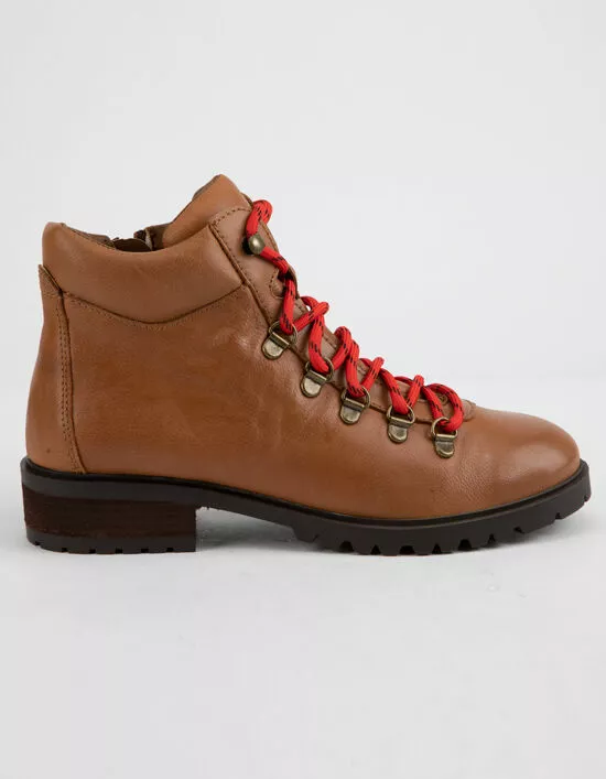 Steve Madden Lora combat boots. In the market for new hikers? LORA is the bootie for you! This cutie delivers an iconic outdoorsy look and a bit of extra height via a slightly taller-than-usual heel. Leather or patent leather upper material. Functional inside zipper. Round toe. Includes an additional pair of black laces. Stacked heel. 1.5 inch heel height. 10.5 inch shaft circumference. 3.5 inch shaft height. Imported.