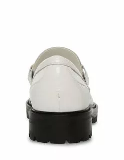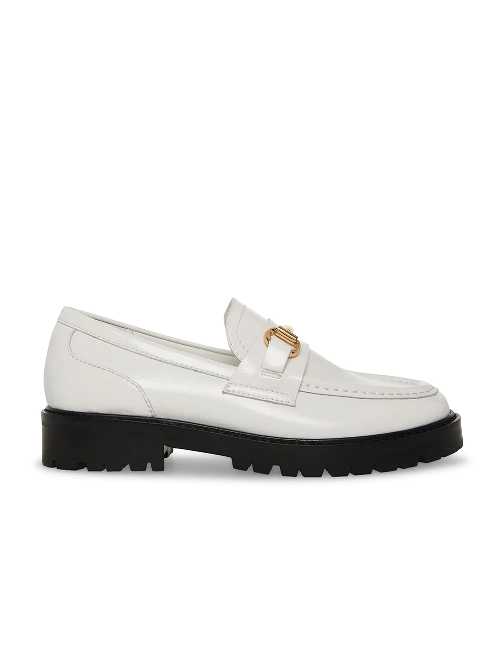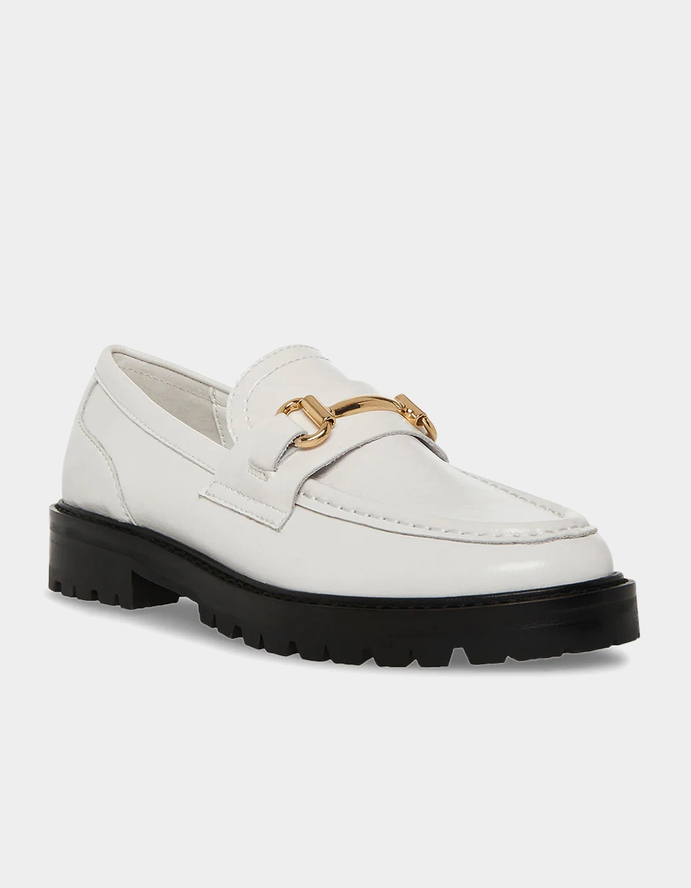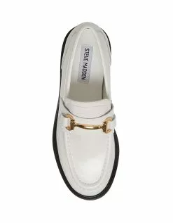 Steve Madden Mistor Leather Oxford Shoes. The Mistor loafer is a classic loafer design with bit hardware accenting the leather construction. The look is toughened up with a low heeled lug sole. Lug heel leather bit loafer. Slip-on style. Low heel treaded sole. Bit hardware across top. 1.25 inch heel height. Leather upper material with hardware. Synthetic lining. Synthetic sole. Imported.