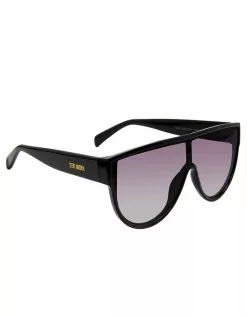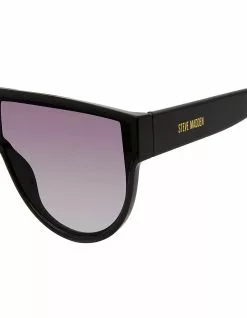 Steve Madden Nigel Sunglasses. An oversized shield style frame gives the Nigel sunglasses their substantial profile for a big statement in a lightweight design. Flat top shield sunglasses. Polycarbonate front, temple and lens. Eye/bridge/temple width: 143/0/142(mm). Imported.