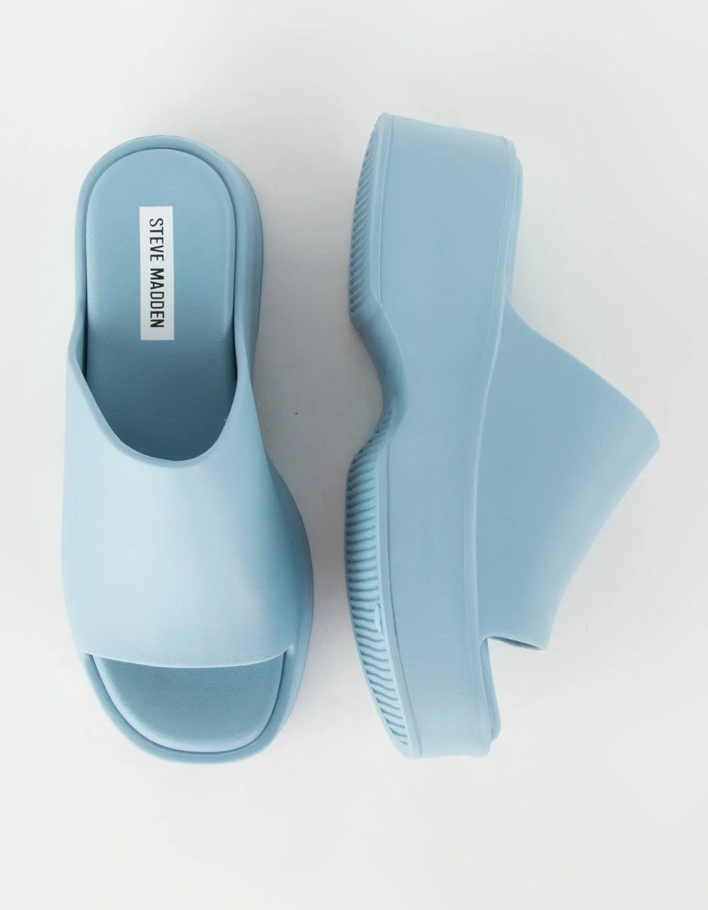 Steve Madden Slinky-J Platform Sandals. Sleek and simple sandals to dress up any outfit. 2.25 inch heel height. 1.25 inch platform. Synthetic upper material. Synthetic lining. Synthetic sole. Imported.