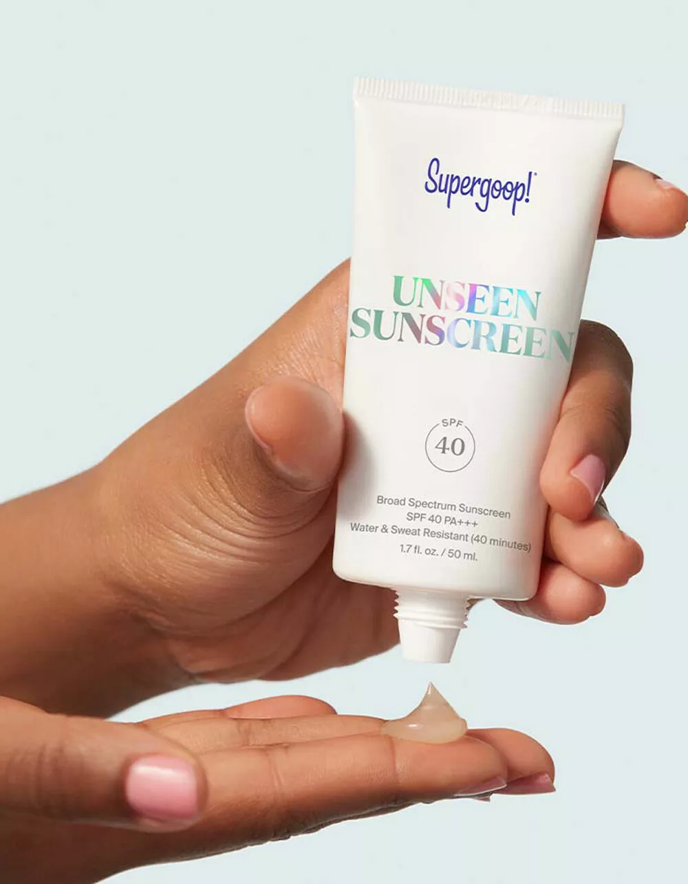 Supergoop! Unseen 1.7 Oz Sunscreen SPF 40. The original, totally invisible, weightless, scentless sunscreen with SPF 40 that leaves a velvety finish. This innovative, antioxidant-rich multitasker has a unique oil-free formula that glides onto skin while providing broad spectrum SPF 40 protection. Use it as a makeup-gripping primer under foundation when you want a little more coverage, or on its own if you want a more natural look. It’s a totally game-changing way to wear sunscreen every day, and it will have you SPF-Obsessed™. Imported.