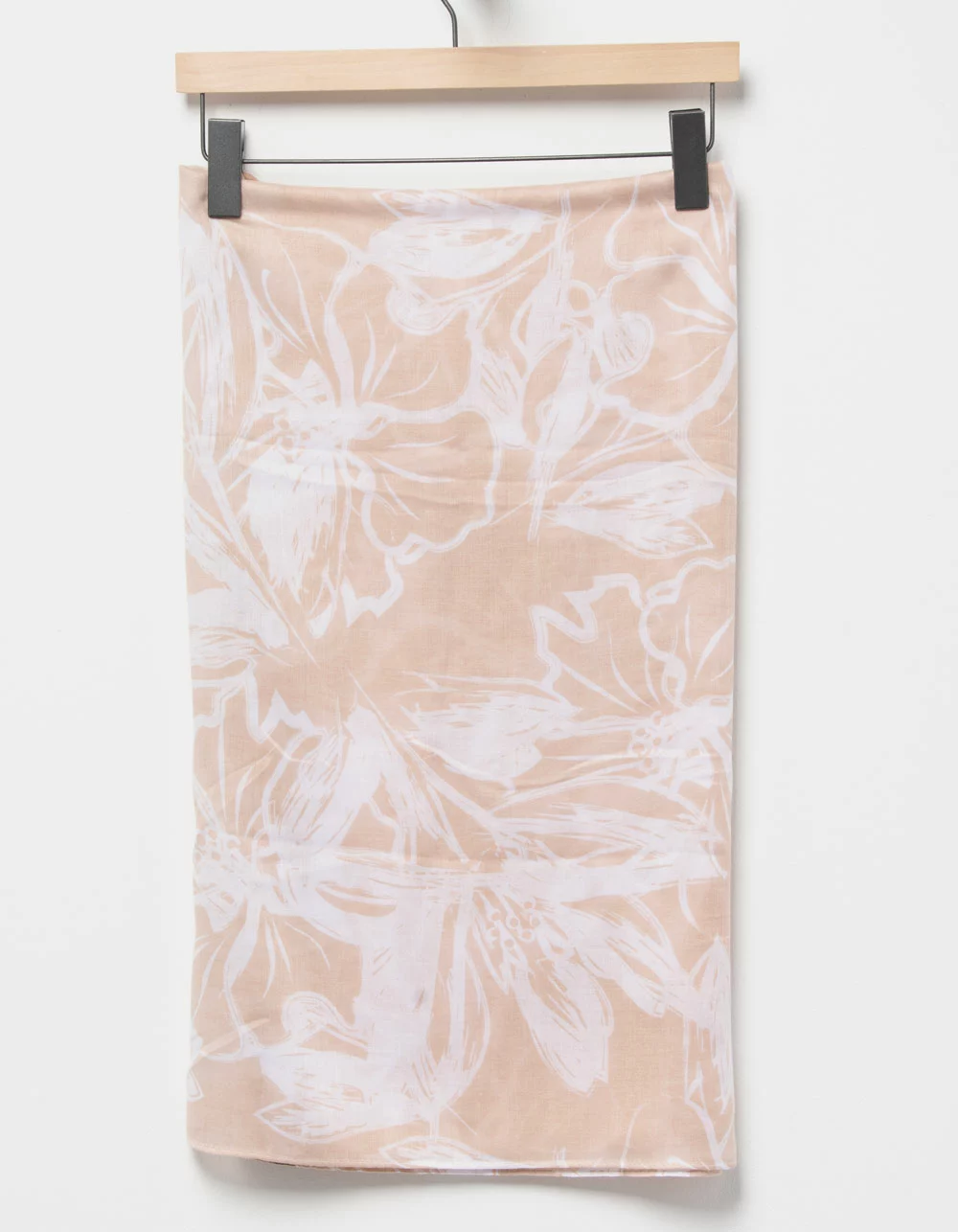 Swirl Sarong And Scarf. A versatile staple for the summer. Allover print. Doubles as a scarf and a sarong. Finished with a frayed hem. 100% Polyester. Machine wash. Imported.