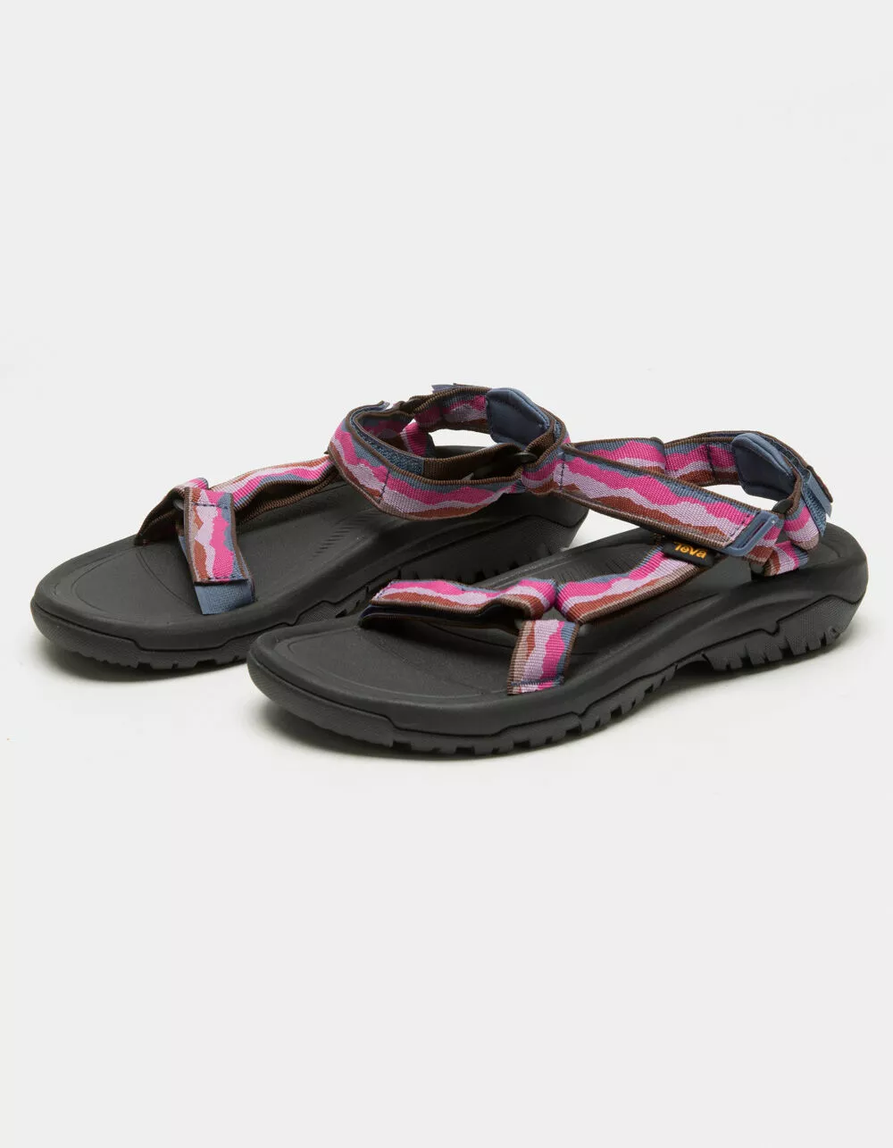 Teva Hurricane XLT2 Sandals. We gave the iconic Hurricane XLT a fresh comfort upgrade, outfitting it with soft heel-strap padding and a new, modern sole featuring even better traction than ever before. Quick-dry webbing made from recycled plastic using traceable, verifiable REPREVE® polyester yarn by Unifi® supports your foot and stands up to abuse, these sandals save 4 plastic bottles from ending up in landfills. Injection-molded strap ends for quick and easy grip and adjustability, Easy hook-and-loop closure comes on and off quickly and gets the fit just right. A robust EVA footbed is made for all-day adventuring. Nylon shank stabilizes and supports your foot on uneven terrain. Rubber outsole for durability and traction. Vegan footwear, created using synthetic and plant-based materials. This style is recyclable. Imported.