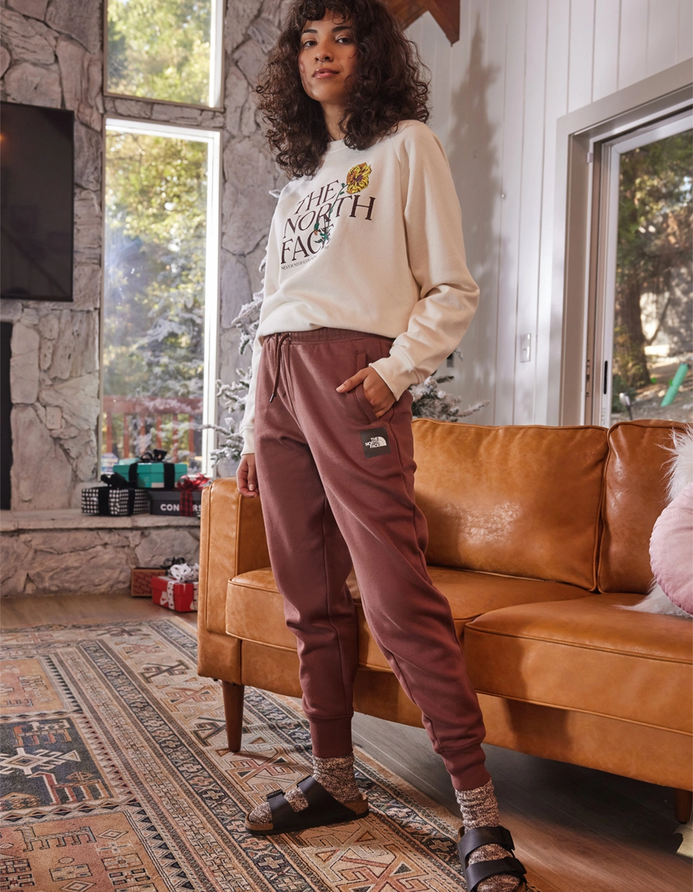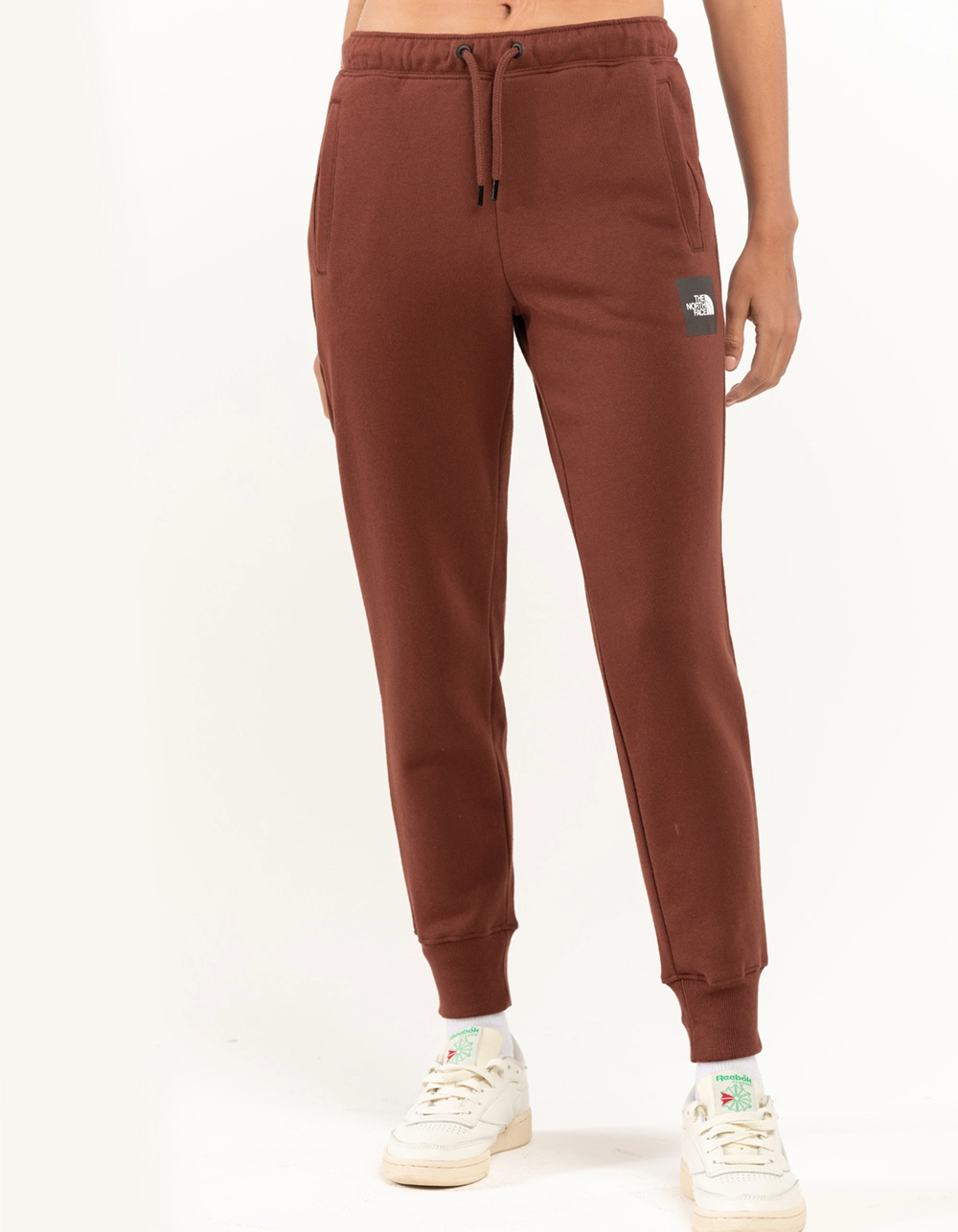 The North Face Box NSE Joggers. The soft cotton blend of the Women’s Box NSE Joggers has enough stretch for your workouts and enough comfort for more relaxed days. Standard fit. Elastic waistband with a drawcord for adjustability. Welt hand pockets and back pocket. Rib on cuffs. No-hand, water-based, screen-printed box logo on left thigh. Body: 67% cotton, 33% polyester 3-end terry fleece. Rib: 87% cotton, 9% polyester, 4% elastane 3-end terry fleece. Machine wash. Imported.