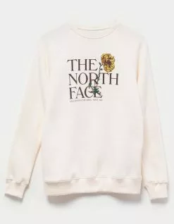 The North Face Graphic Injection Crewneck Sweatshirt. Graphic at chest. Small graphic on back. Cuffed long sleeves and hem. Ribbed crew neckline. Long sleeves. 75% Cotton 25% Polyester. Machine wash. Imported.