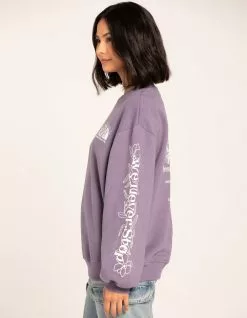 The North Face International Womens Day Crewneck Sweatshirt. Graphic screened on left chest, and back. Graphic screened down the length of left sleeve. Ribbed crew neckline. Cuffed long sleeves and hem. Fleece lining. Oversized fit. Body: 75% Cotton, 25% Polyester. Lining: 95% Cotton, 5% Elastane. Machine wash. Imported.