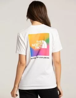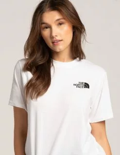 The North Face Never Stop Exploring Tee. Graphic on left chest. Large graphic on back. Crewneck. Short sleeve. 100% Cotton. Machine wash. Imported.